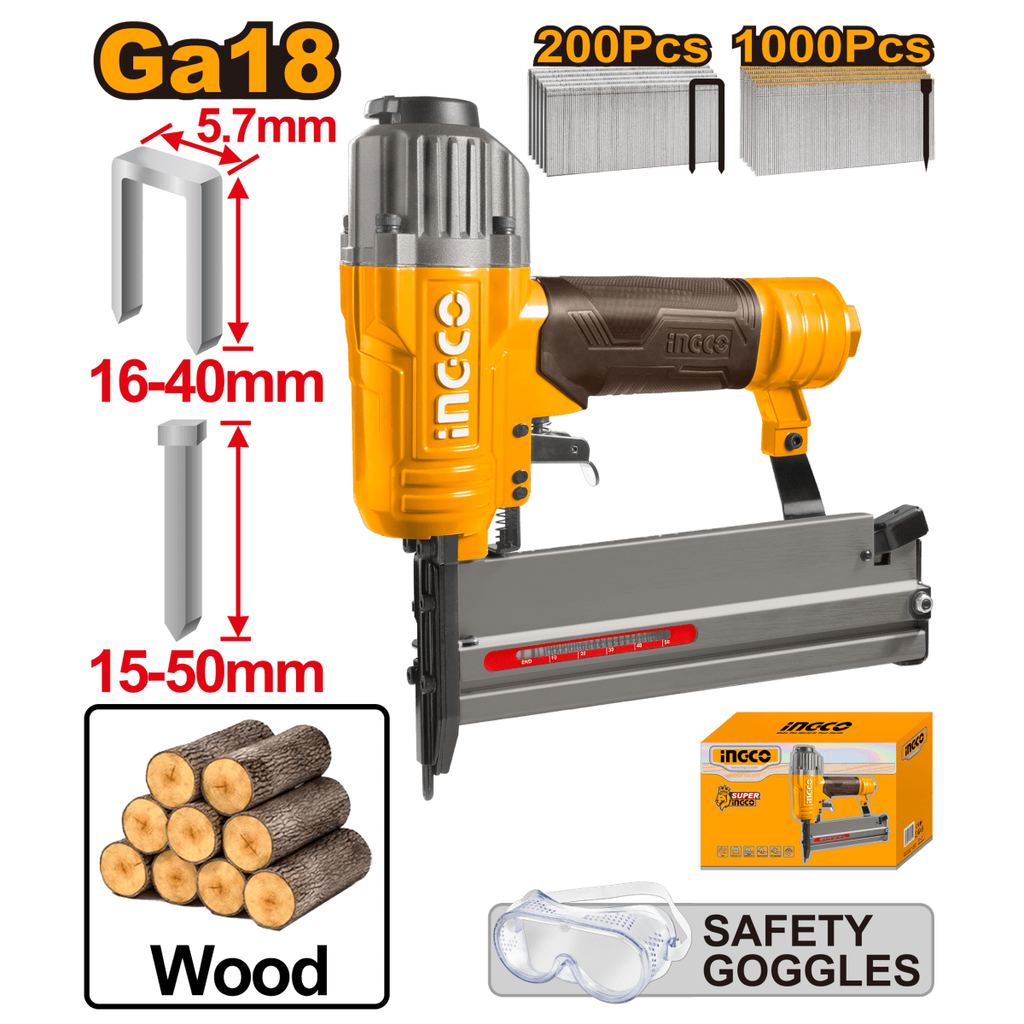 Diseño Funcional y Ergonómico: Pensada para un uso fácil y cómodo, la engrapadora y clavadora neumática de INGCO facilita las sesiones de trabajo prolongadas reduciendo la fatiga del usuario y dando excelentes resultados.