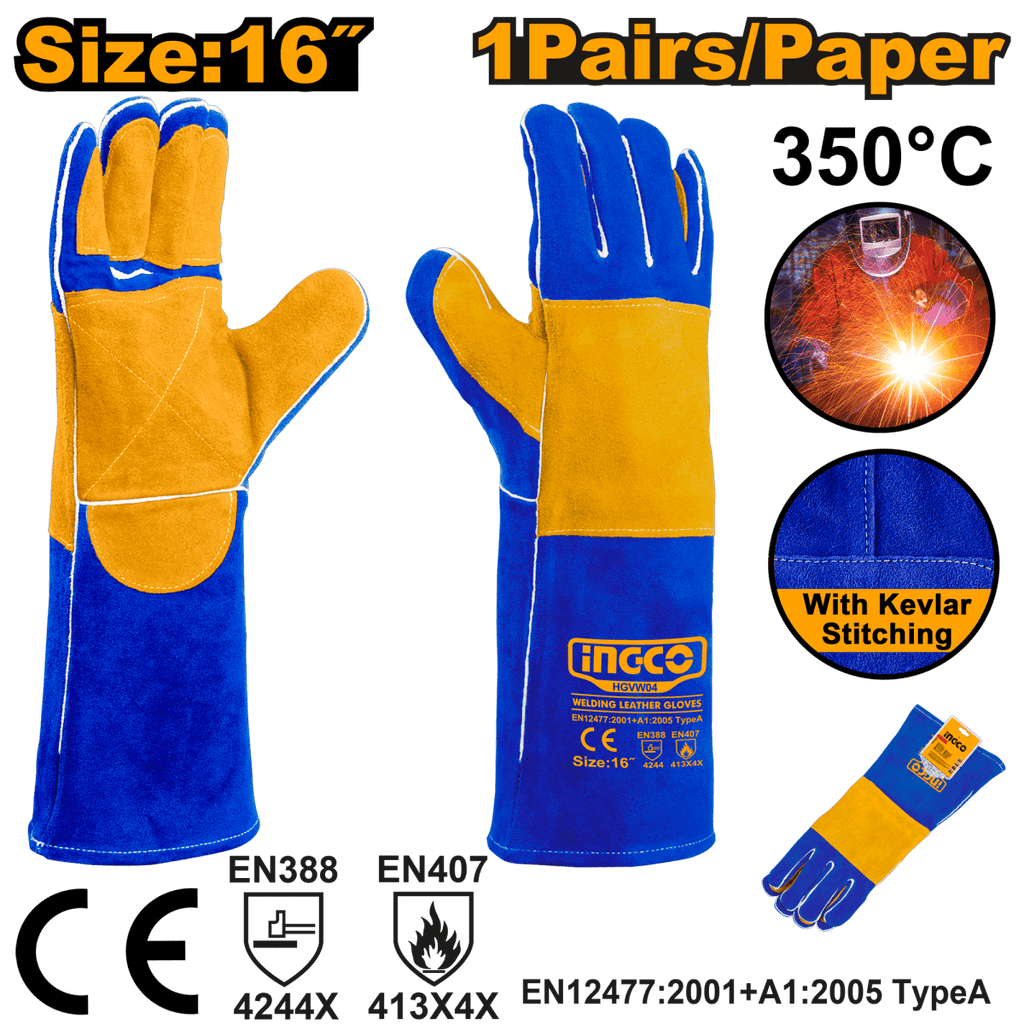 GUANTES DE CARNAZA PARA SOLDAR 16 INGCO HGVW04