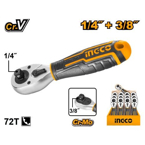 RATCHET 1/4 - 3/8 72T CRV LARGO 140mm INGCO HRTH081438
