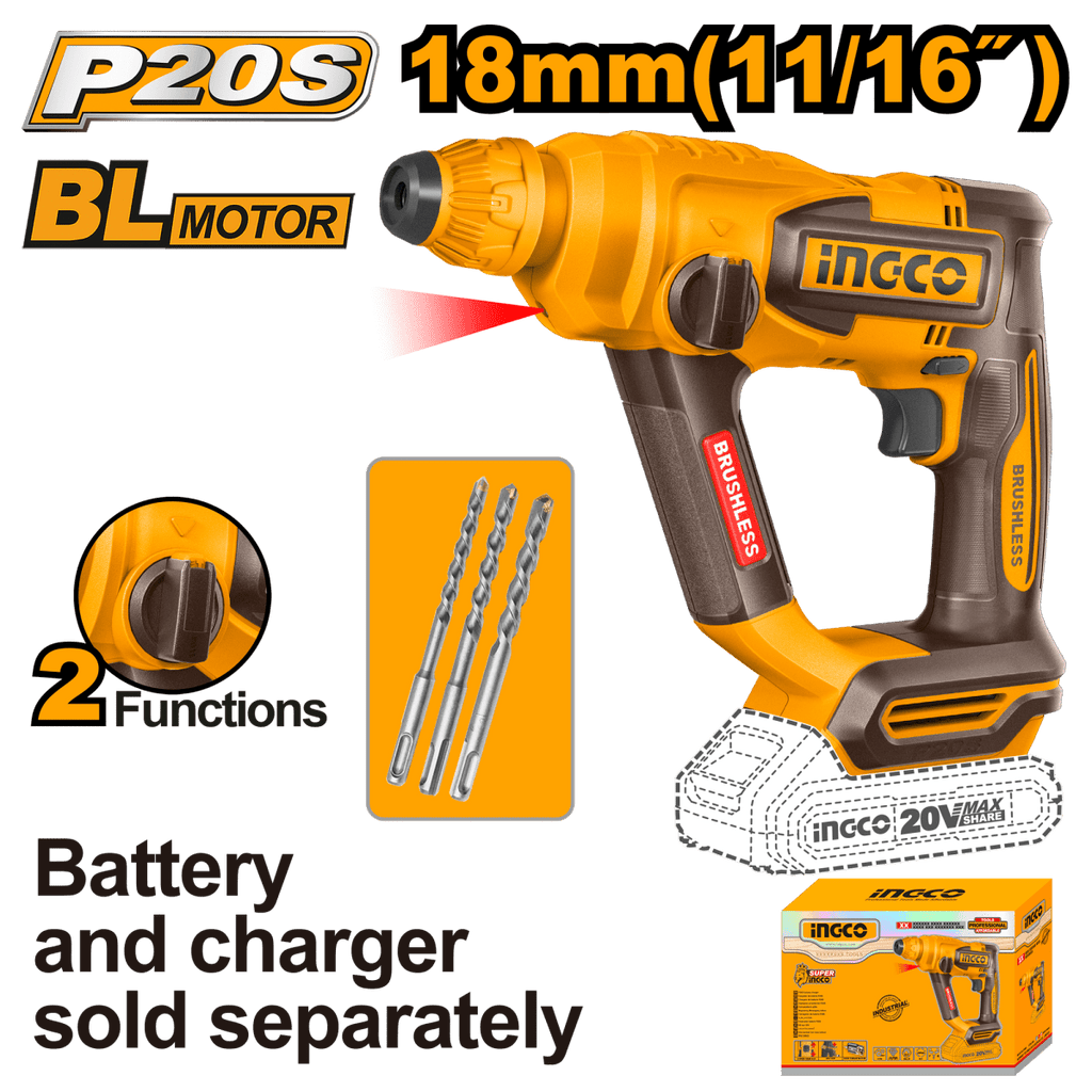 - 1 Rotomartillo inalámbrico INGCO CRHLI20188 con motor brushless