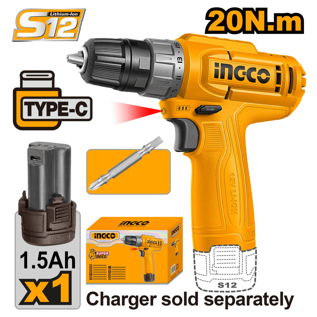TALADRO M3/8 12V 20NM ROTACION INCLUYE BATERIA INGCO CDLI12456